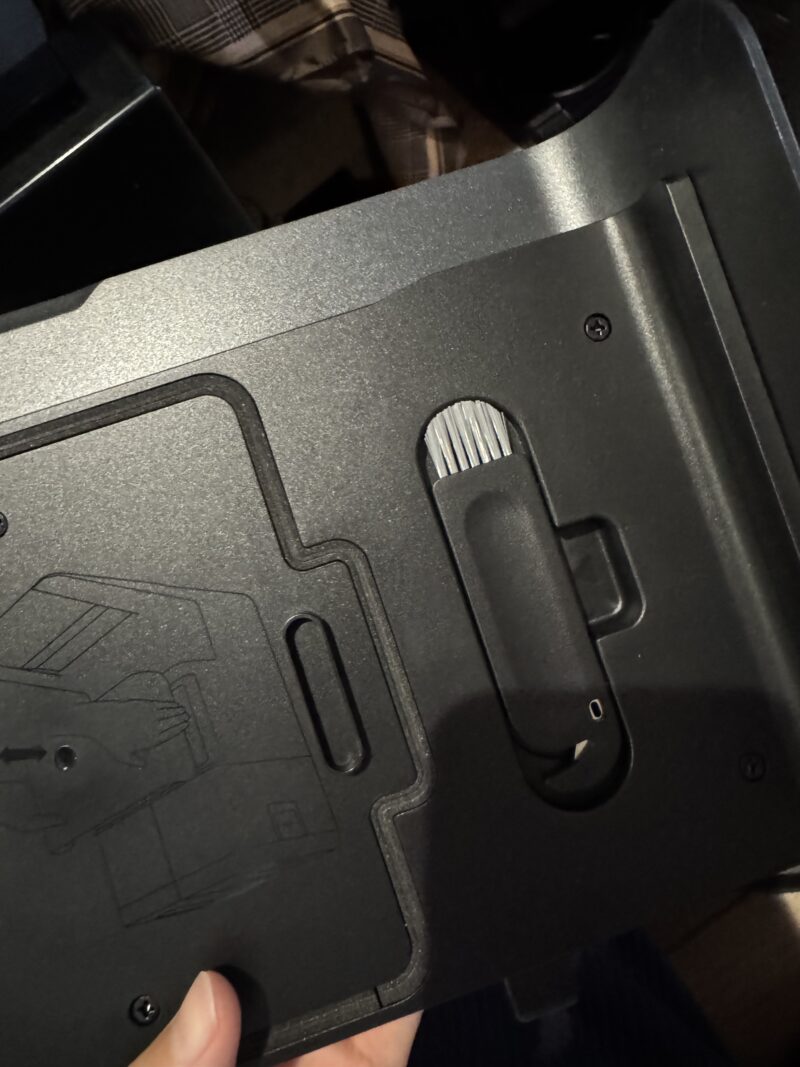 本体のフタ裏に格納されているカッター付きブラシ、今回は使いませんでしたが、髪の毛の絡まりを取るのにすごく便利そうです。
