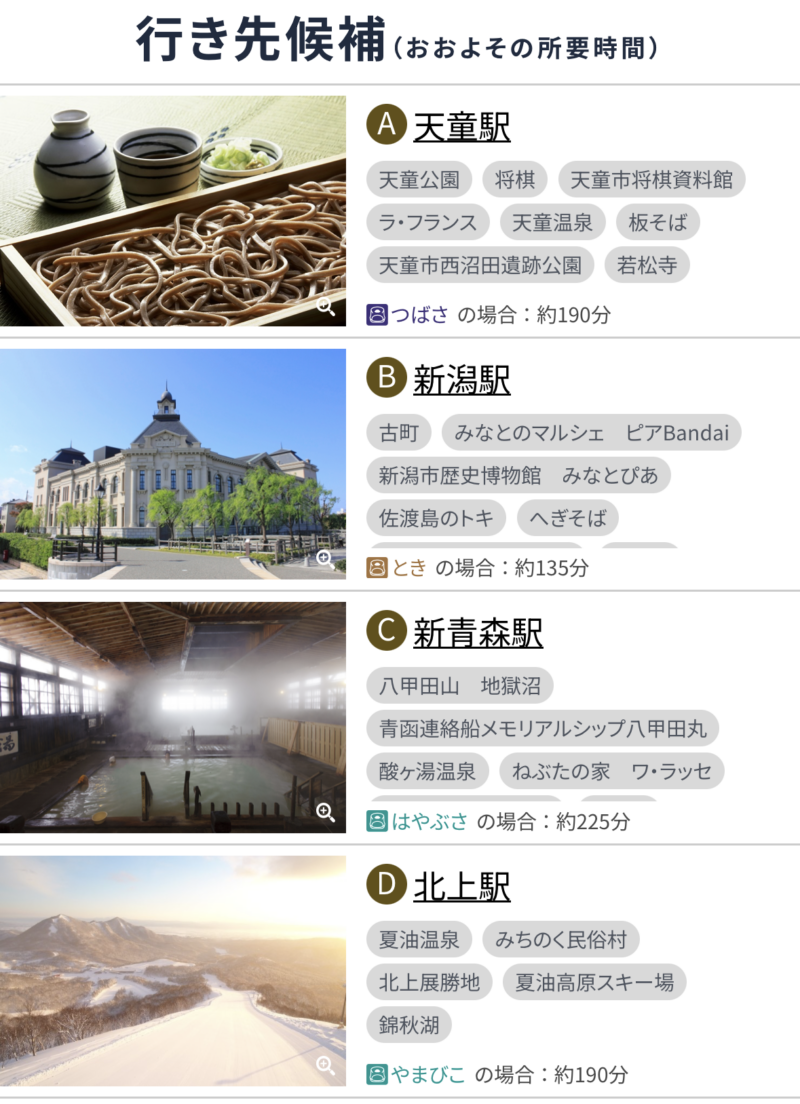 「どこかにビューン」はランダムに選ばれた4つの候補地の中から、